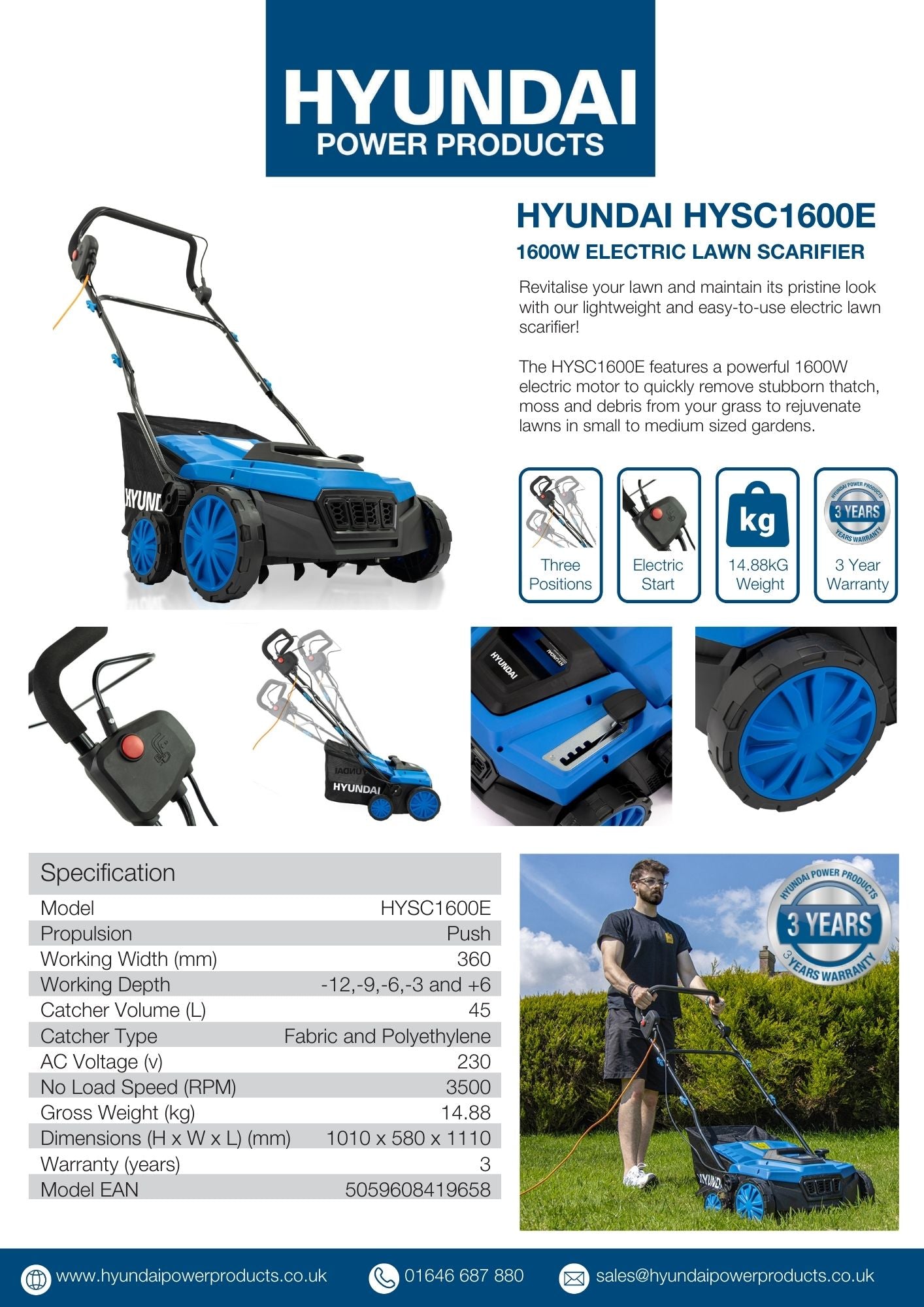 | In The Box | HYSC1600E Scarifier, Manual, Interchangeable blades and Blade changing hex key |