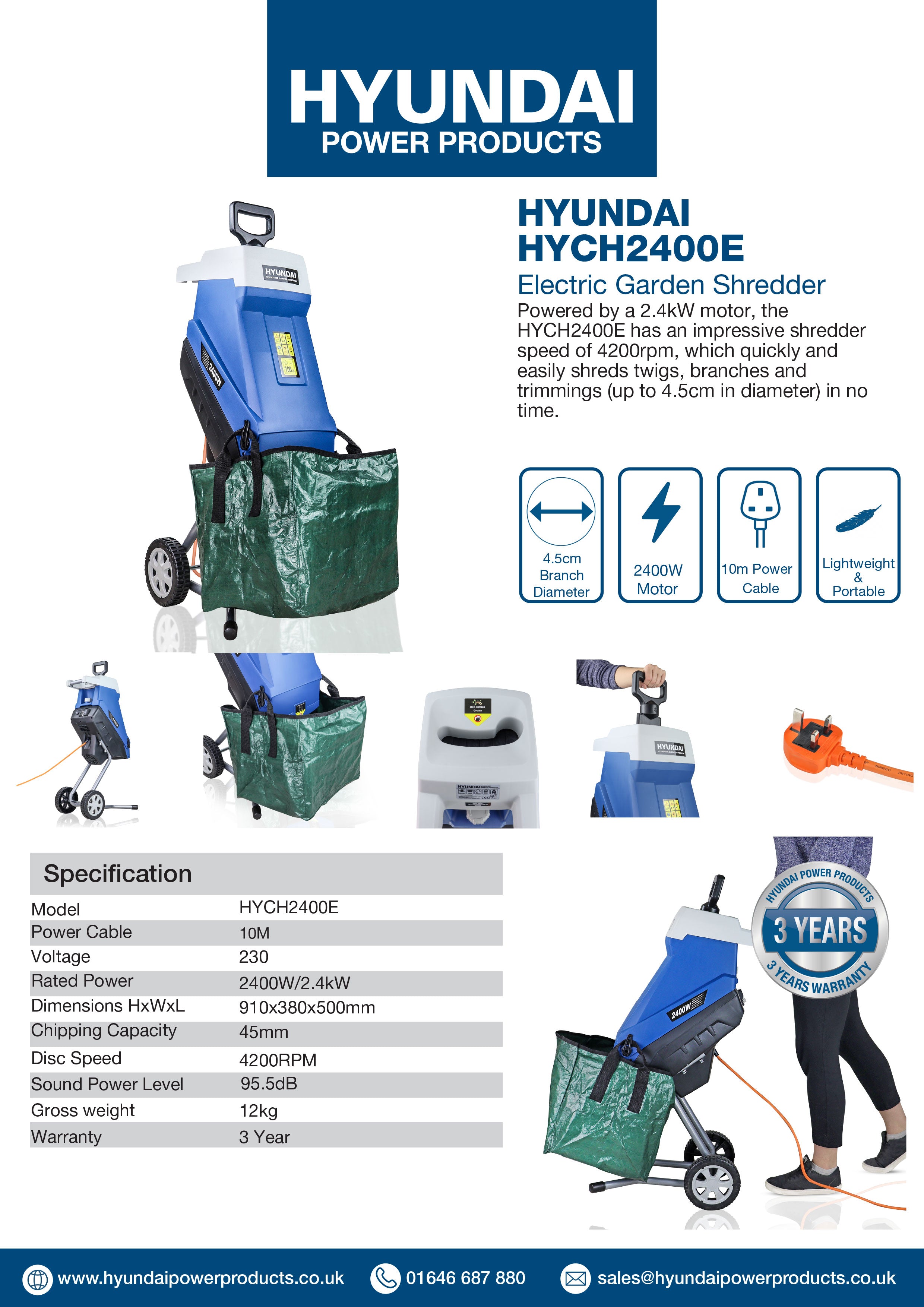 As with all of Hyundai’s garden equipment range, this shredder also comes with a 3 year Hyundai warranty (as well as UK-based parts and service) - as well as a range of accessories to help you get set up straight out of the box in no time at all.